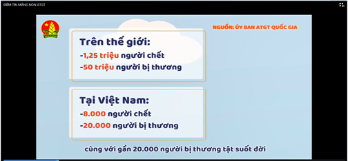 Trong các buổi sinh hoạt dưới cờ hình thức trực tuyến, Liên đội TH Đô thị Sài Đồng đã xây dựng các hình thức tuyên truyền, giáo dục An toàn giao thông cho đối tượng HS lớp 1, 2, 3, 4, 5. Thông qua các video, game tương tác, các con HS được phổ biến các kiến thức về An toàn giao thông phù hợp lứa tuổi. Để hưởng ứng một cách có hiệu quả, các bậc PHHS, cán bộ, giáo viên cùng các em học sinh hãy thực hiện tốt khẩu hiệu “Ba có, bốn không” như sau: * Khẩu hiệu “Ba có”: 1. Có hiểu biết đầy đủ và nghiêm chỉnh chấp hành Luật giao thông đường bộ. Người đi bộ: Phải đi trên hè phố, lề đường, đi sát mép đường; Chỉ qua đường ở những nơi có tín hiệu vạch kẻ đường và phải tuân thủ tín hiệu chỉ dẫn. 2. Có ý thức trách nhiệm cao đối với bản thân và cộng đồng khi tham gia giao thông. Phải đảm bảo an toàn cho mình và những người khác. Hợp tác, giúp đỡ người bị nạn khi xảy ra tai nạn giao thông. 3. Có hành vi ứng xử hợp lý và đúng mực, có tình người trong các tình huống xảy ra trên đường, cư xử có văn hóa như: tham gia giao thông từ tốn, bình tĩnh, ưu tiên cho người già, trẻ nhỏ, biết xin lỗi khi có va quệt. * Khẩu hiệu “Bốn không”: 1. Không uống rượu bia, phóng nhanh vượt ẩu, vượt đèn đỏ, điều khiển phương tiện chưa đủ giấy tờ quy định. 2. Không lấn chiếm: Lòng đường, vỉa hè, hành lang bảo vệ ATGT. 3. Không có thói hư, tật xấu trong ứng xử với mọi người cùng tham gia giao thông cũng như khi xảy ra TNGT. 4. Không để xảy ra TNGT khi tham gia giao thông.