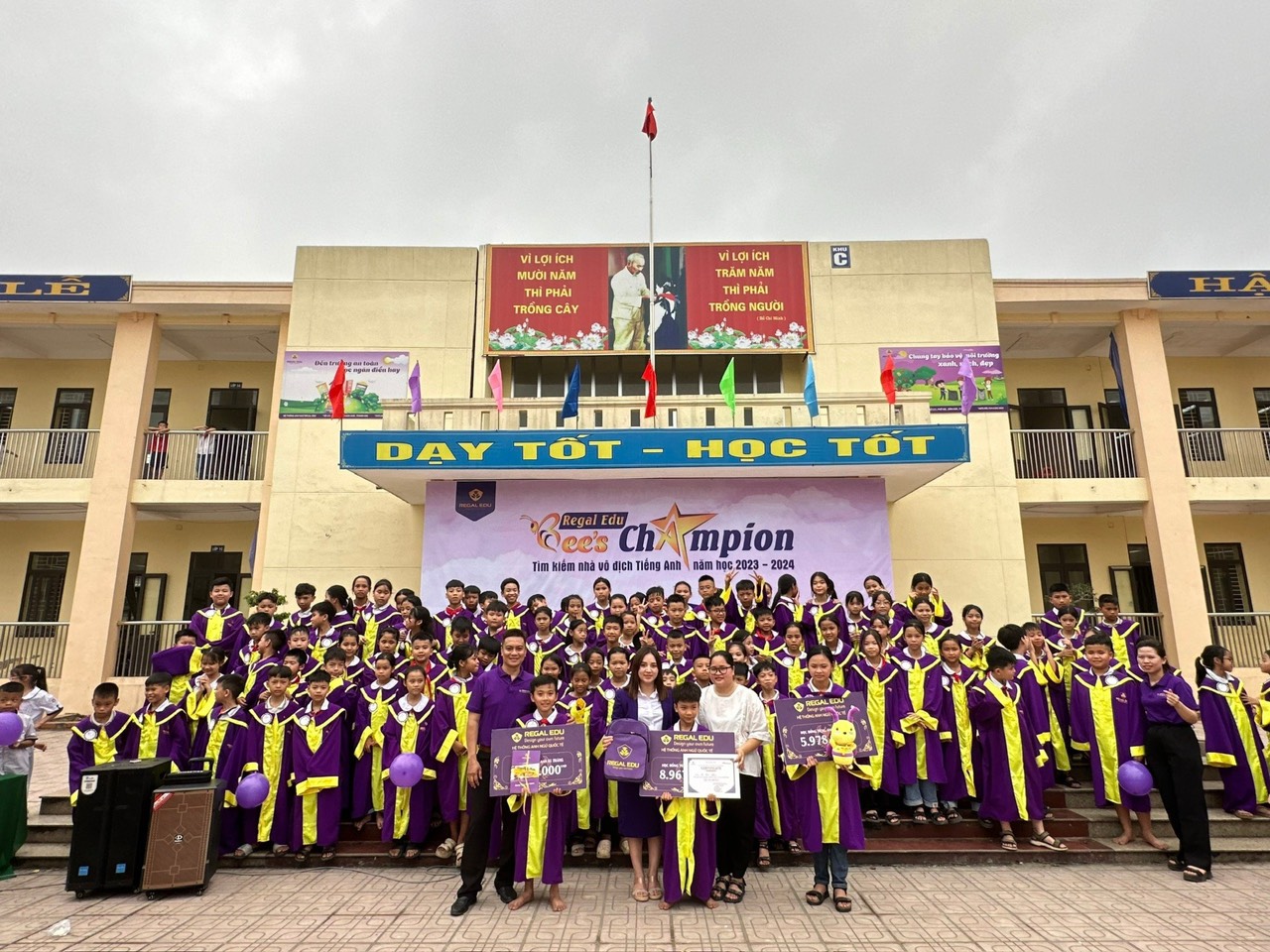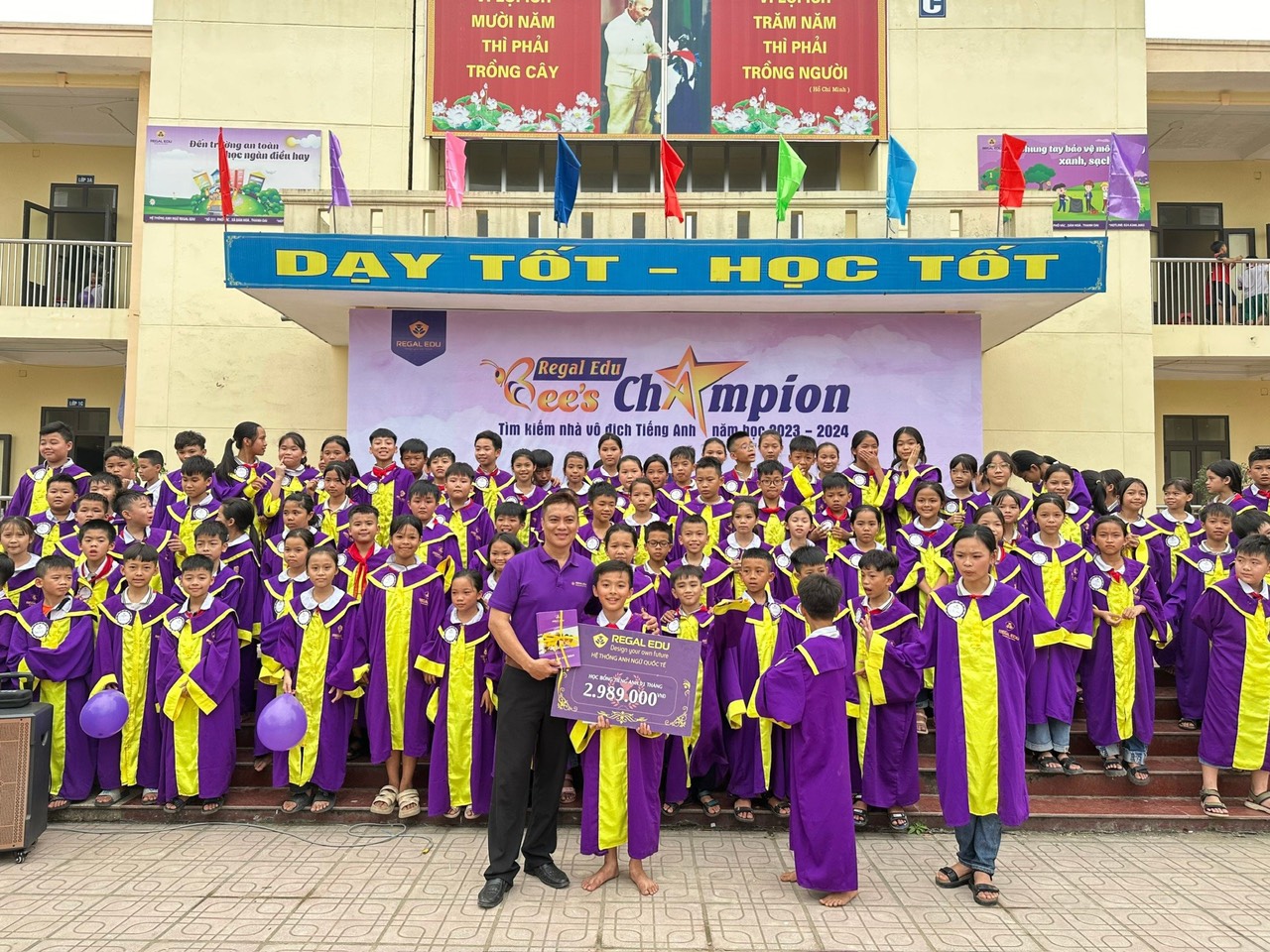 Trải qua 3 vòng thi gay cấn, ban tổ chức đã tìm kiếm ra chú ong vàng vô địch của cuộc thi là em Nguyễn Hải Nam học sinh lớp 3B. Em đã rất xuất sắc chiến thắng 99 thí sinh và giành giải quán quân của cuộc thi "Bee's Champion 2024" do trung tâm Regal Edu chi nhánh Phố Vác phối hợp với nhà trường tổ chức. Phần thưởng dành cho nhà vô địch là 01 chiếc cặp sách và khóa học trị giá 8.967.000đ tại trung tâm Anh Ngữ quốc tế Regal Edu.