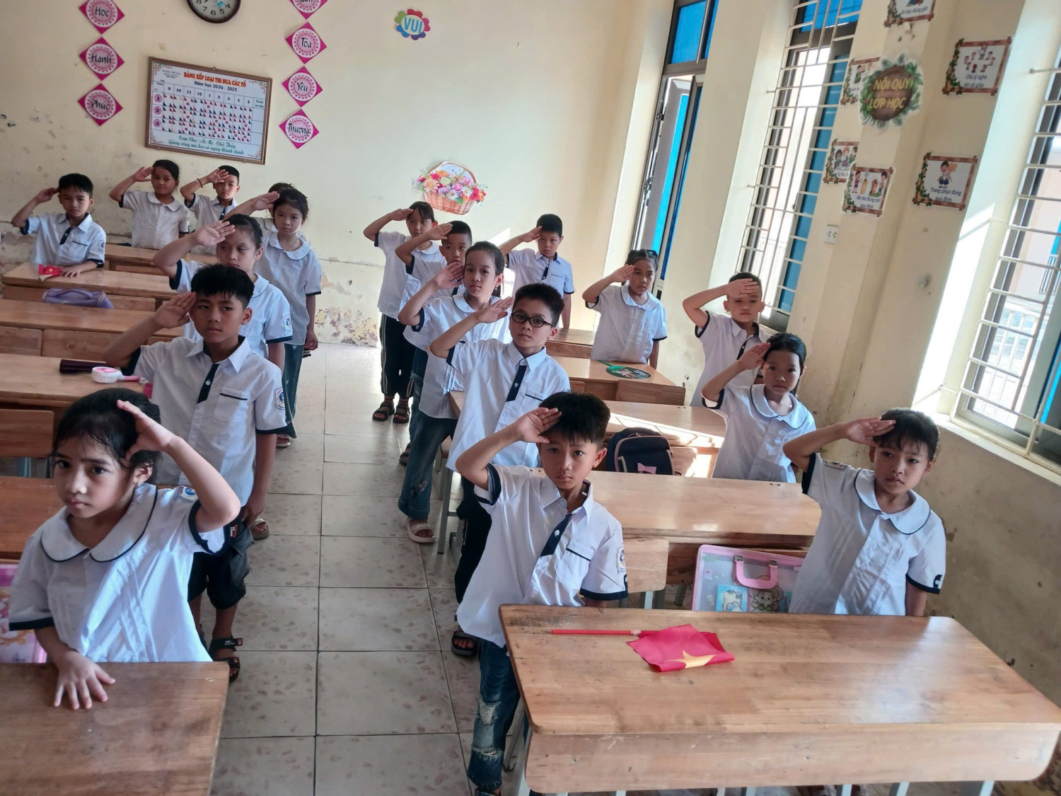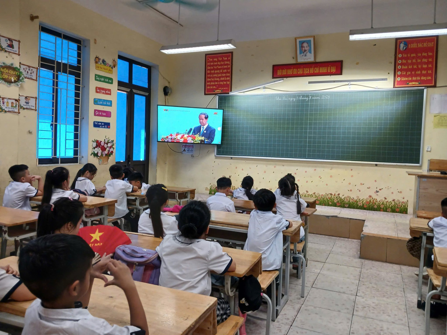 Ngay sau chương trình Khai giảng dưới sân trường, thầy trò nhà trường tiếp tục tham dự Lễ Khai giảng năm học 2025 - 2026 gắn với kỷ niệm 80 năm thành lập Bộ Quốc gia Giáo dục trực tuyến do Bộ GD&ĐT tổ chức. Trên các lớp học đều diễn ra nghi thức chào cờ, hát Quốc ca cùng thời điểm diễn ra Lễ chào cờ tại Trung tâm Hội nghị Quốc gia và được nghe phát biểu của các đ/c Lãnh đạo Đảng, Nhà nước và hoà mình trong tiếng trống khai trường.” Tùng Tùng Tùng Tùng Tùng”