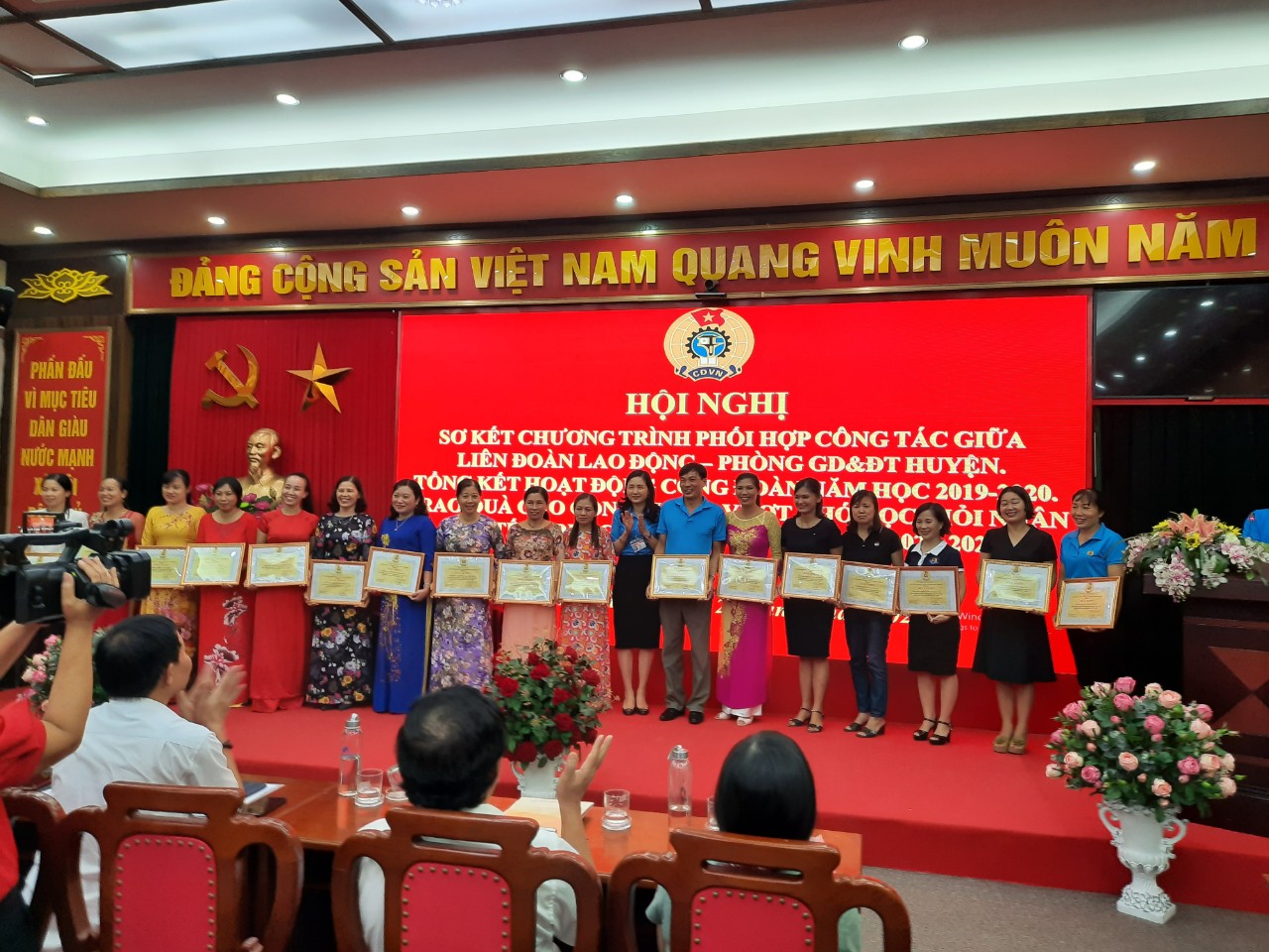 Chị Tuyến(áo dài xanh) cùng các cán bộ công đoàn.