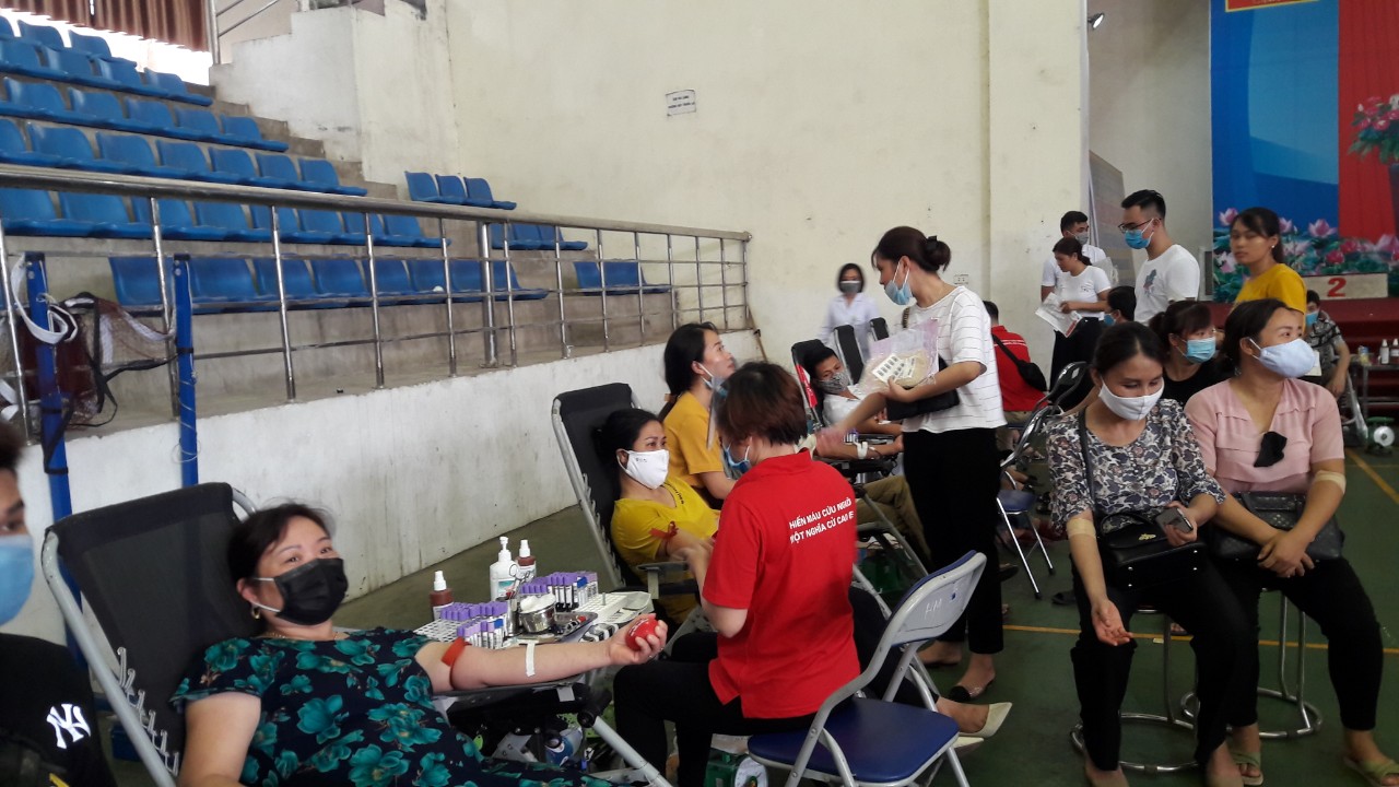Chị Tuyến cùng cán bộ giáo viên nhà trường tham gia hiến máu tình nguyện.