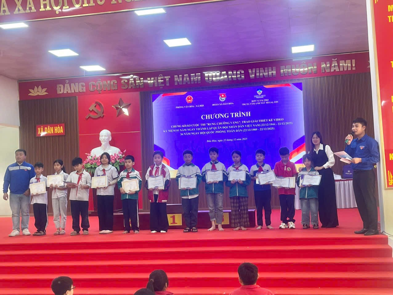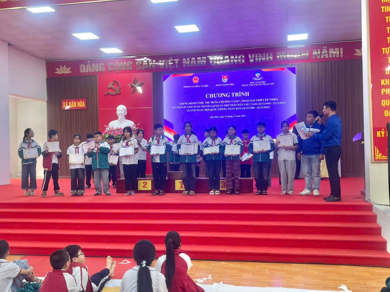 Hòa chung không khí thi đua sôi nổi chào mừng 81 năm Ngày thành lập Quân đội Nhân dân Việt Nam (22/12/1944 – 22/12/2025), Trường Tiểu học Xuân Dương xin nhiệt liệt chúc mừng 15 em học sinh đã đại diện nhà trường tham gia Hội thi “Rung chuông vàng” do Phòng Văn hóa – Xã hội và Đoàn Thanh niên xã Dân Hòa tổ chức. Với tinh thần tự tin các em đã tham gia với tinh thần giao lưu học hỏi. xin được chúc mừng 3 em học sinh Lê Thanh Thùy, Nguyễn Gia Khải lớp 5A1, bạn Nguyễn Thị Ngọc Ánh lớp 5A2 đã đạt giải khuyến khích của cuộc thi. Thành tích của các em không chỉ là niềm vui, niềm tự hào của gia đình và nhà trường mà còn thể hiện sự hiểu biết, lòng yêu nước, niềm tự hào về truyền thống vẻ vang của Quân đội Nhân dân Việt Nam anh hùng. Nhà trường xin ghi nhận và biểu dương tinh thần học tập, rèn luyện nghiêm túc của các em; đồng thời trân trọng cảm ơn sự quan tâm, tạo điều kiện của các thầy cô giáo, quý phụ huynh và Ban Tổ chức hội thi. Chúc các em tiếp tục nỗ lực, học tập thật tốt và gặt hái thêm nhiều thành công trong những sân chơi trí tuệ tiếp theo! 💐