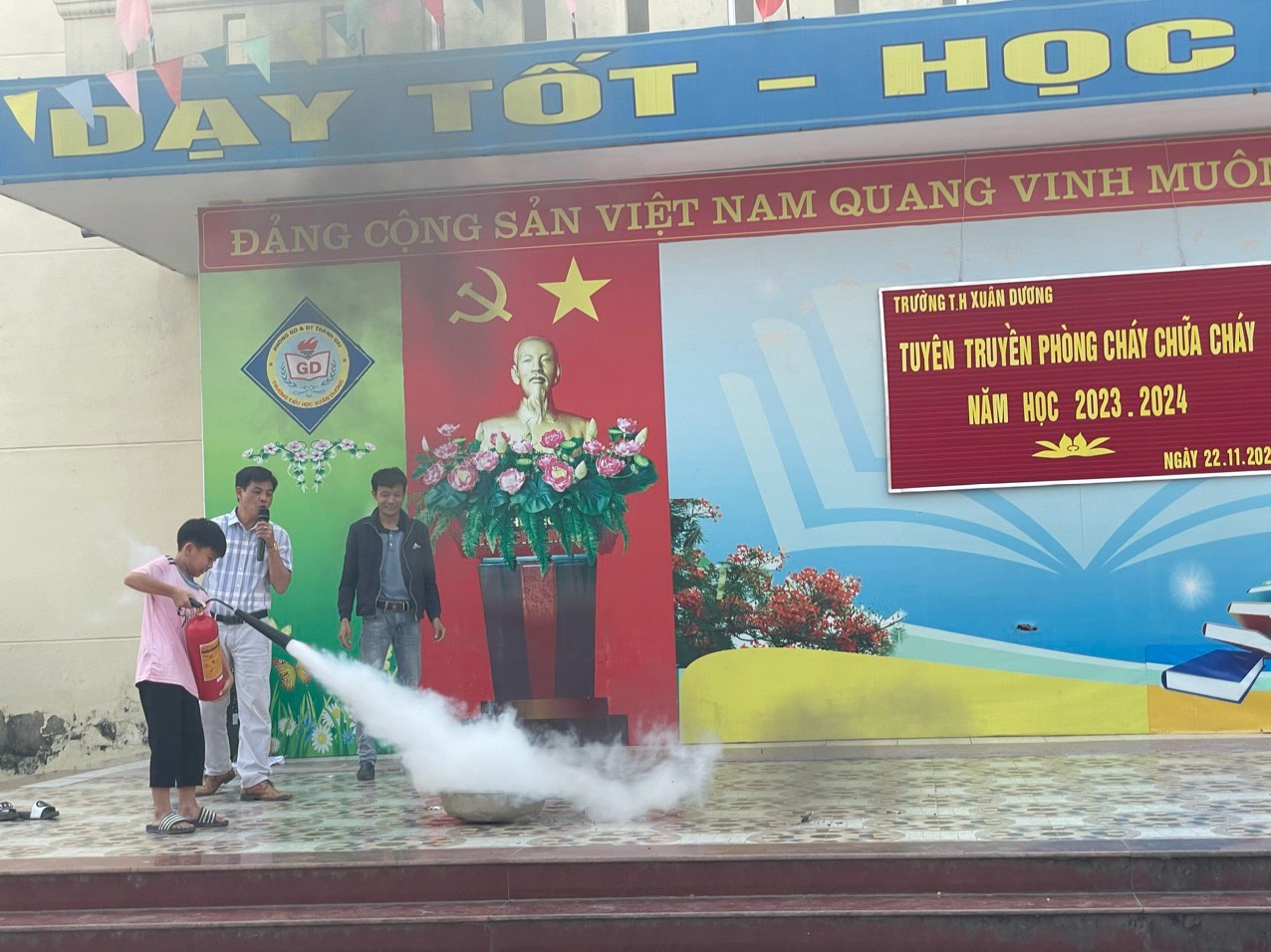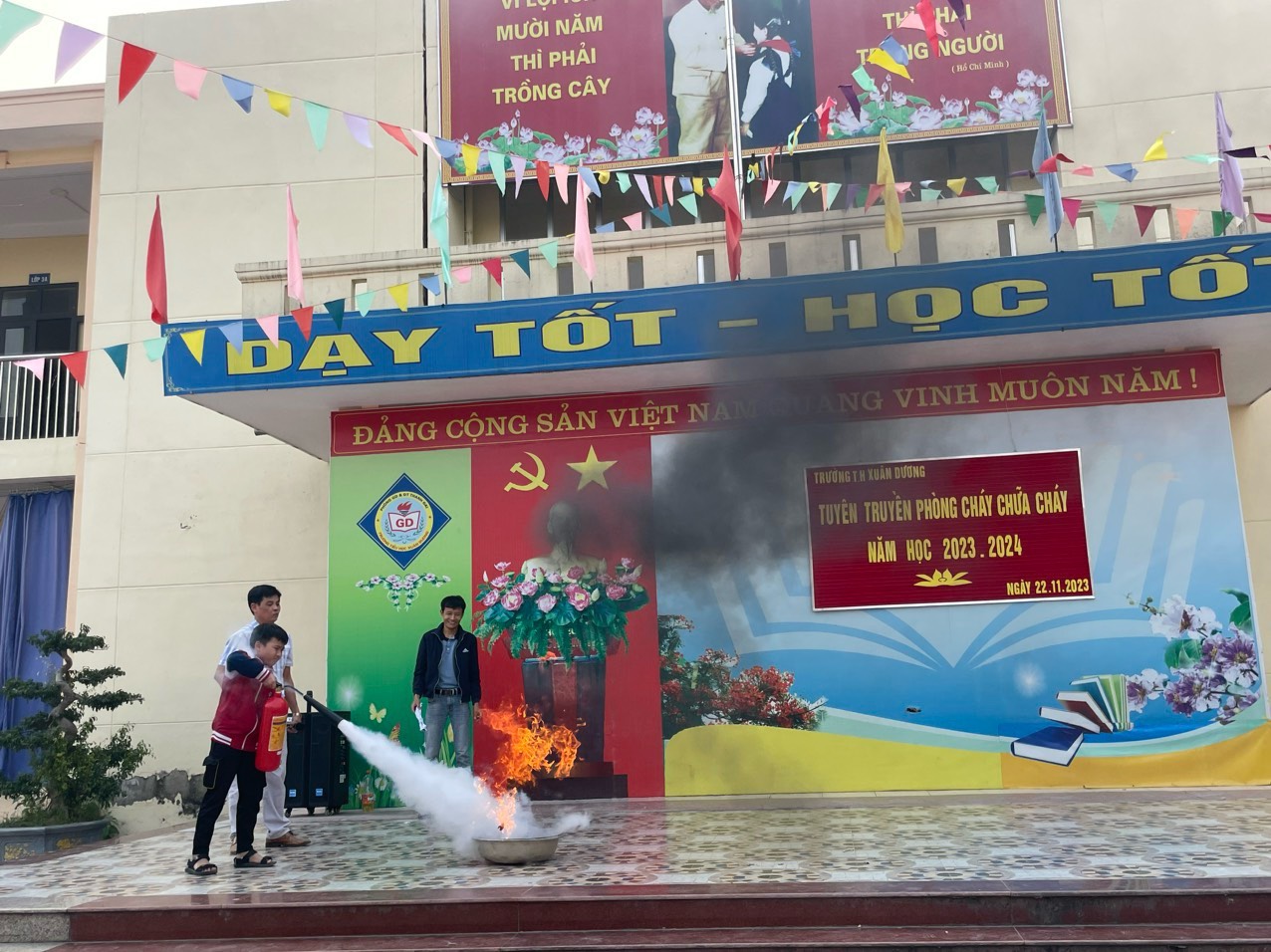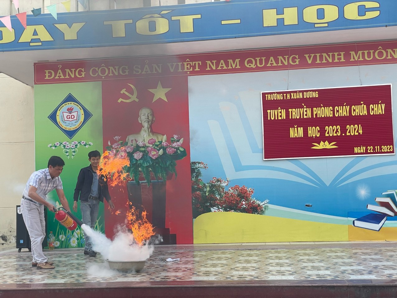 Thực hiện chỉ đạo của PGD&ĐT huyện Thanh Oai về công tác tuyên truyền PCCC. Hôm nay 22/11/2023 trường TH Xuân Dương - Thanh Oai tổ chức tuyên truyền PCCC cho toàn thể CBGVNV và các em học sinh toàn trường. Buổi tập huấn diễn ra trong không khí rất sôi động, mang lại ý nghĩa sâu sắc và nâng cao ý thức hơn nữa trong việc PCCC đối với tập thể CBGVNV và học sinh của nhà trường.